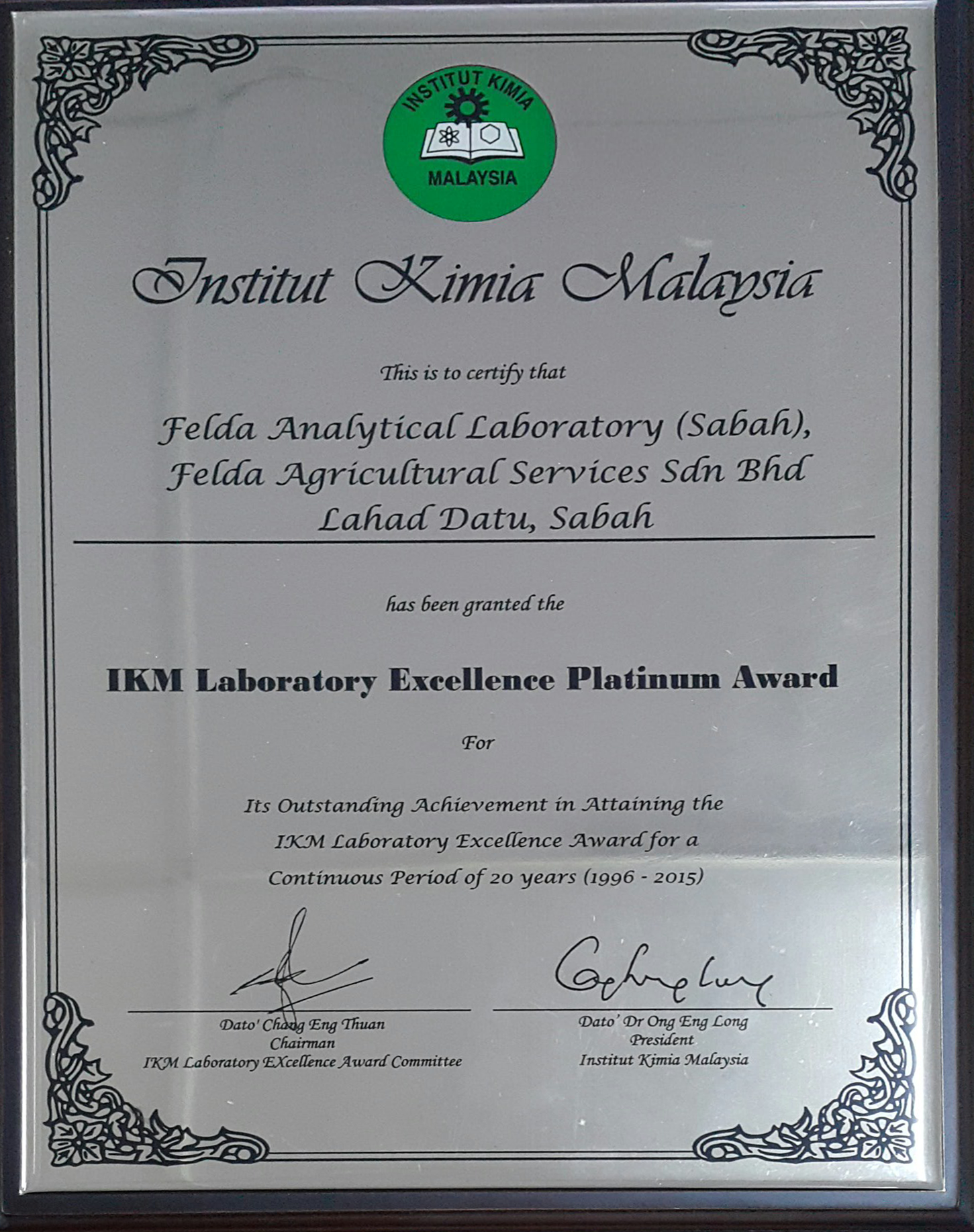 IKM Laboratory Excellent Platinum Awards (Lahad Datu)