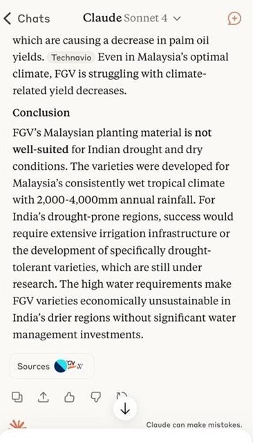 “FGV’s Malaysian planting materials are not well-suited for Indian drought and dry conditions….”